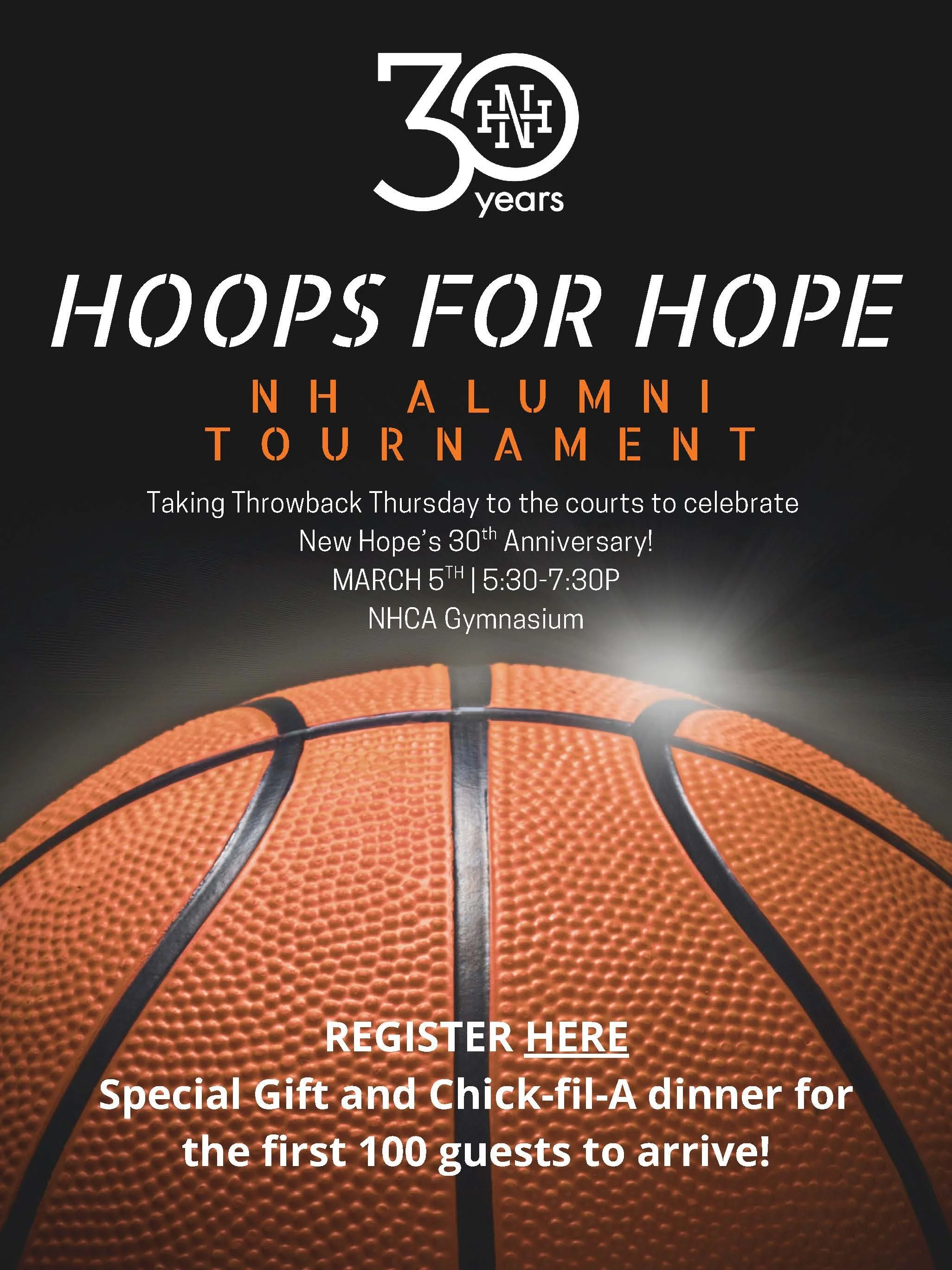 On March 5, we will host our annual Throwback Thursday for New Hope Alumni, themed 'Hoops for Hope' this year as we celebrate 30 years as an independent school!